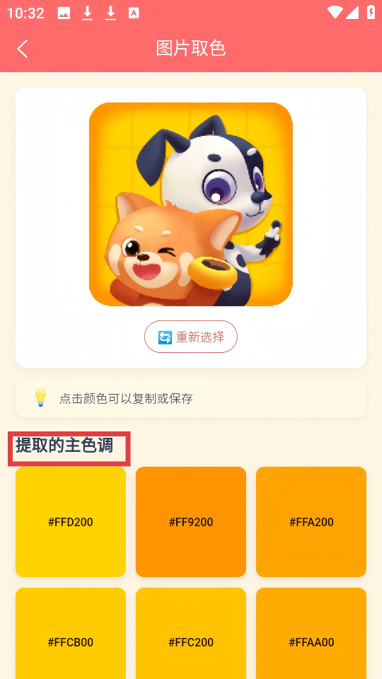 4、完成选择后,即可查看图片【提取的主色调】及对应的颜色代码。