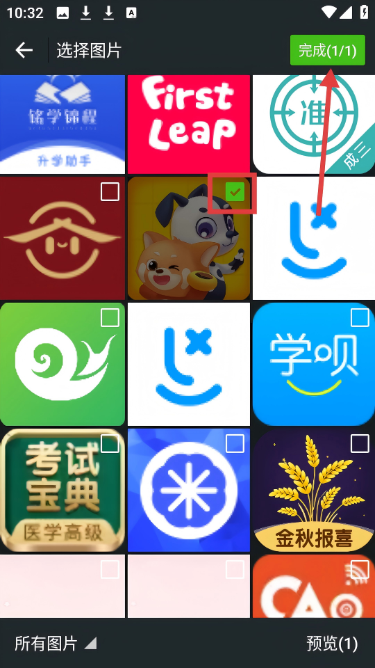 3、在相册选择好图片后,点击右上角【完成(1/1)】。