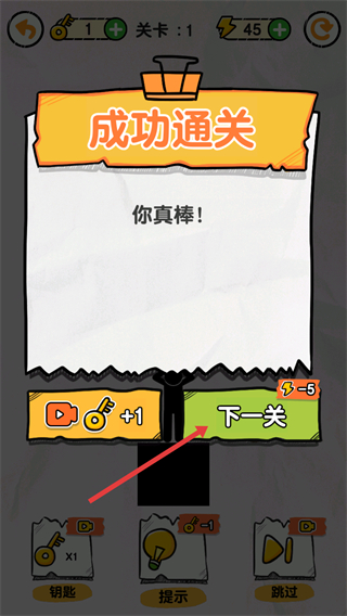 4、完成关卡后显示【成功通关】,点击【下一关】按钮进入新关卡,继续挑战画线救援任务。
