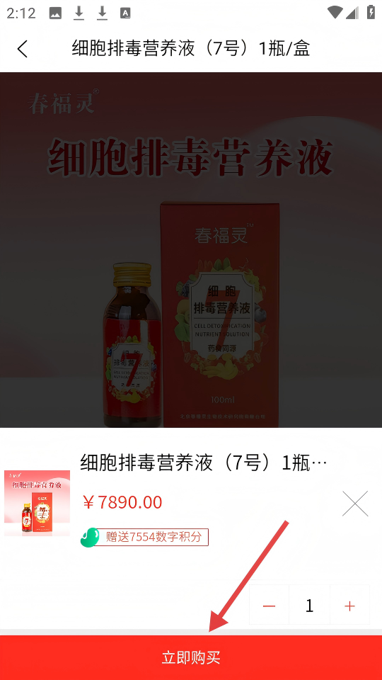 2、在【细胞排毒营养液(7号)1瓶/盒】商品详情页,点击【立即购买】按钮。