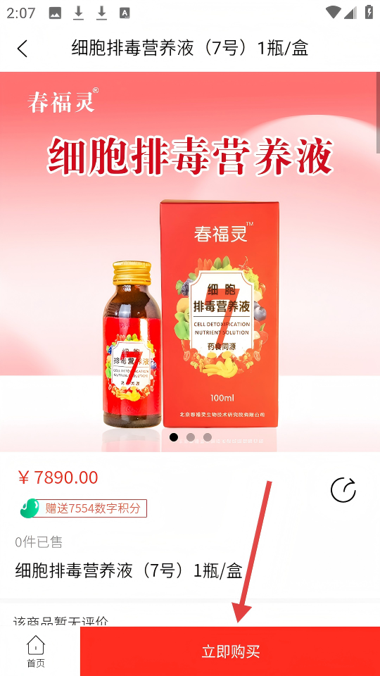 3、在【细胞排毒营养液(7号)1瓶/盒】商品页面,点击【立即购买】按钮。