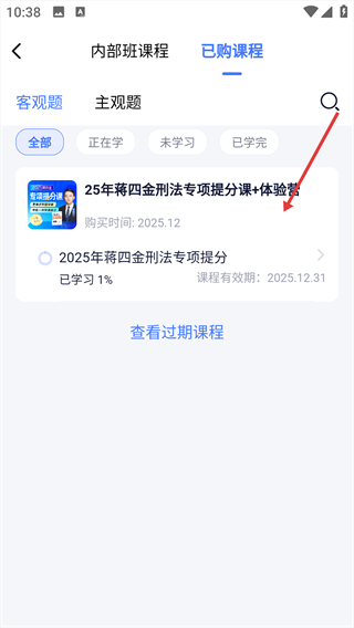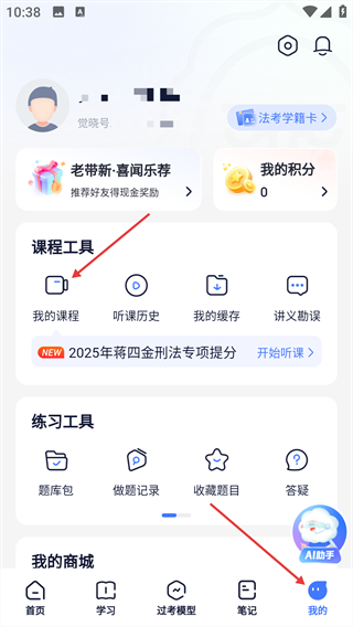 1、在“我的”页面,点击课程工具中的“我的课程”选项,进入已购课程的列表页面。