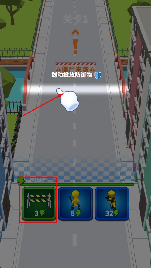2、当提示【僵尸来袭-划动投放防御物】时,划动屏幕投放路障等防御物。