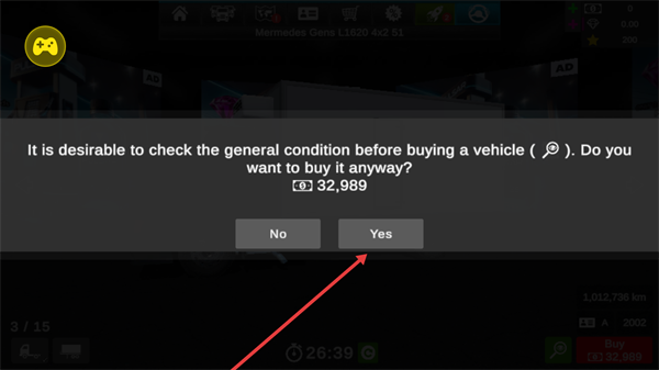 3、点击【Yes】按钮,确认以对应价格购买该车辆。