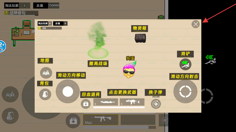 2、滑动方向移动角色躲避危险,遇敌时滑动射击并点击【更换武器】反击,必要时点击【撤离战场】。