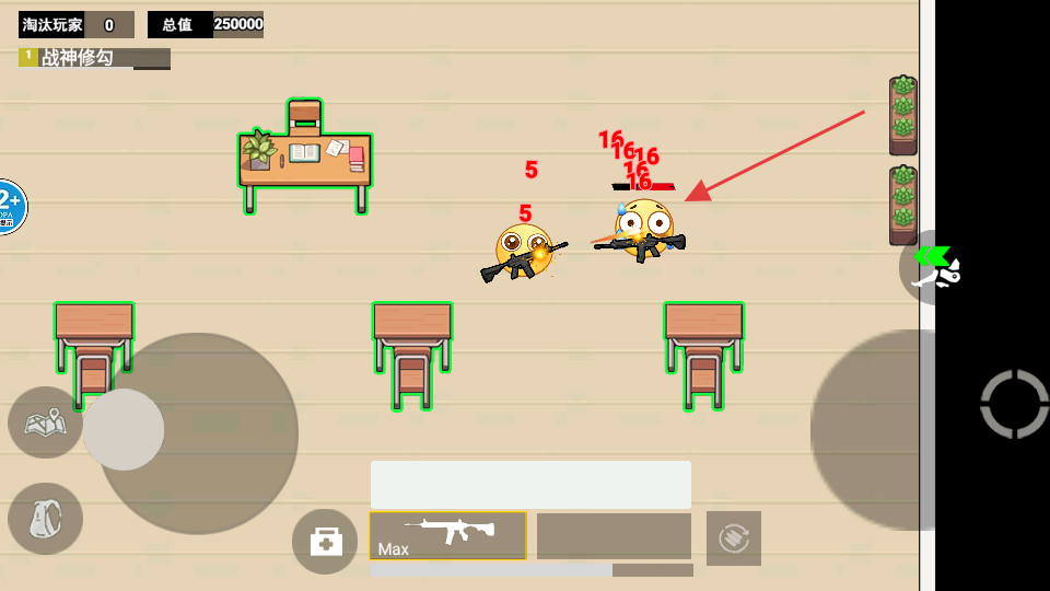 3、在教室场景遇敌持续射击,利用【课桌】掩护减少自身伤害,快速击败对手以继续搜集物资。