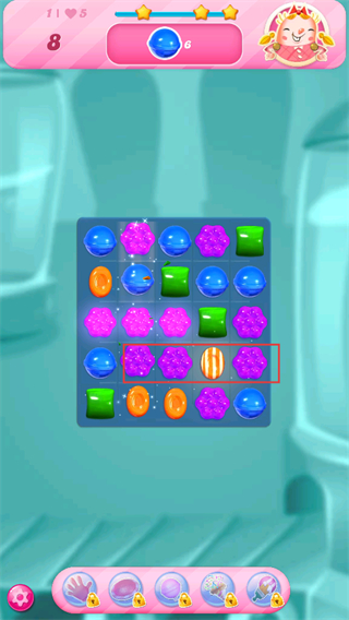 3、持续消除糖果,关注剩余步数和目标进度,合理利用特殊糖果(如条纹糖果)提升消除效率,逐步完成关卡目标。