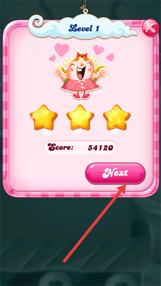 4、关卡完成后,点击【Next】进入下一关,继续糖果消除挑战。
