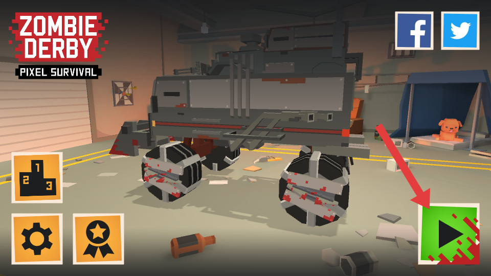 1、点击绿色开始按钮,进入游戏,驾驶战车在僵尸遍布的道路上生存。