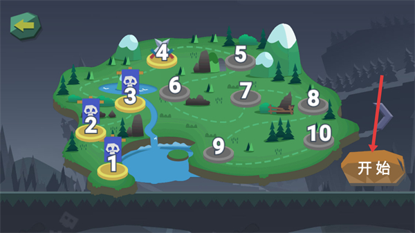 1、在地图界面,点击【开始】按钮,选择关卡进入挑战。