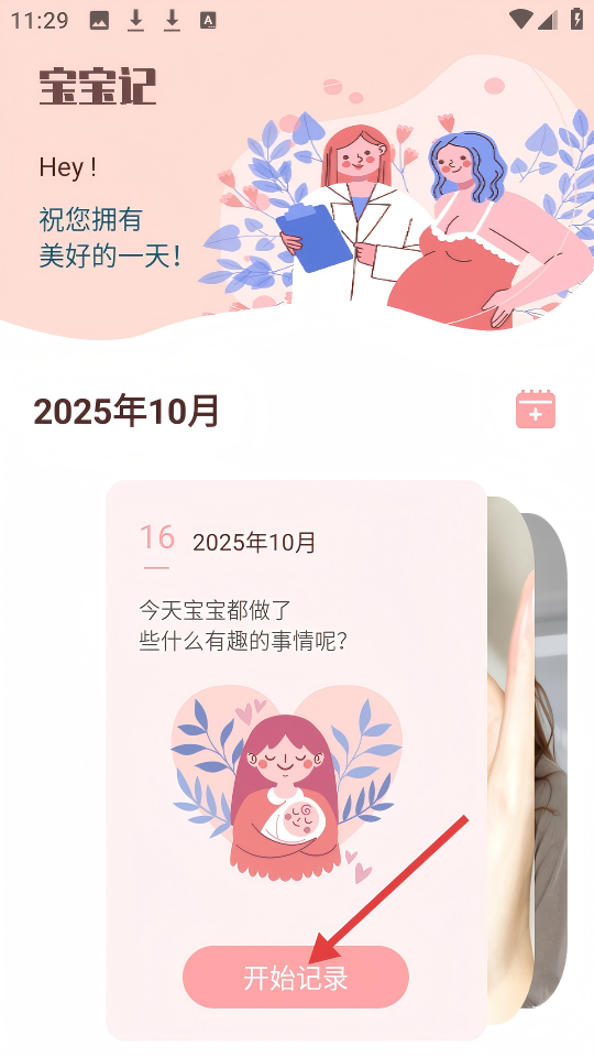 3、在【宝宝记】页面,点击【开始记录】按钮,进入写日记页面。