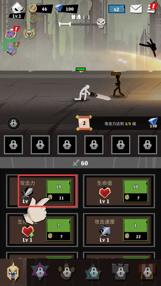2、升级【攻击力】,提升角色攻击能力,助力战斗。
