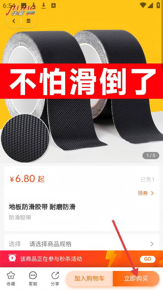 4、在商品页面,点击【立即购买】按钮,可购买该防滑胶带。