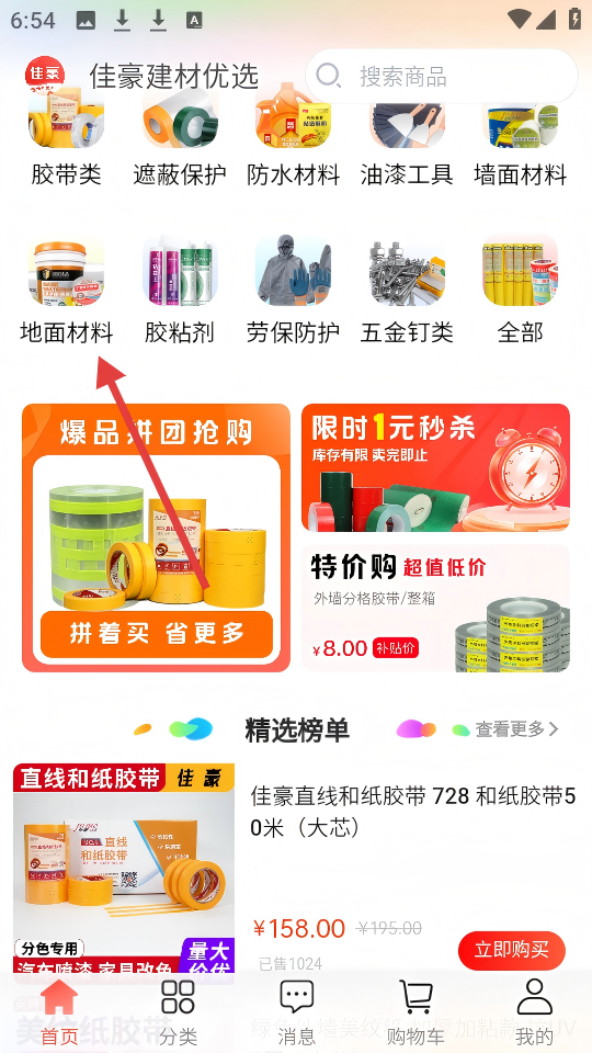 佳豪建材优选是一款专注建材商品采购的购物工具,面向有装修、施工等建材需求的用户,以全品类覆盖与便捷服务简化采购流程。它将商品细分为胶带类、遮蔽保护、油漆工具等多个品类,品类齐全支持一站购齐;同步推出超多优惠活动,用户可参与优惠购物降低成本;还支持商品加入购物车统一结算,搭配便捷支付方式,让建材采购更省心、快捷,切实满足高效采购需求。