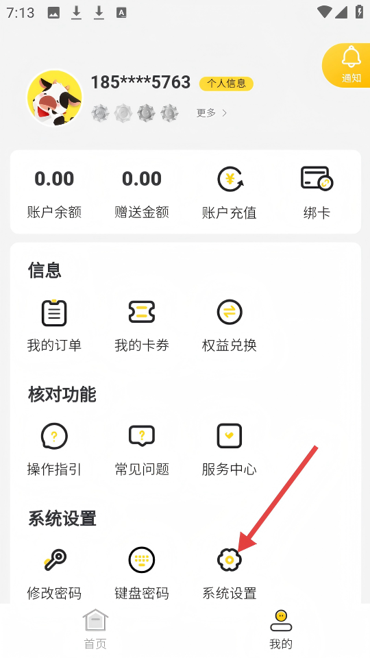 2、在【我的】页面,点击【系统设置】选项,进入系统设置页面。