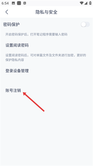 3、进入【隐私与安全】后,找到【账号注销】选项,点击即可进入注销流程。