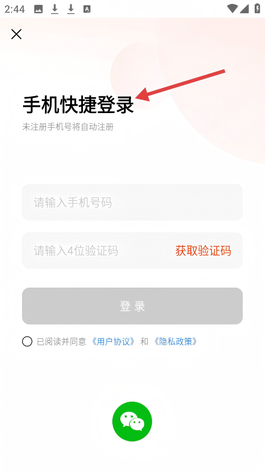 4、在手机登录页面,输入手机号和验证码后即可继续关注别人。