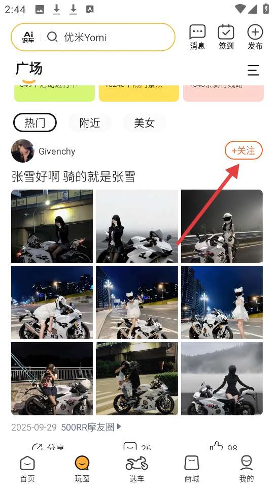2、在广场页面,点击【最美女骑士】图标。