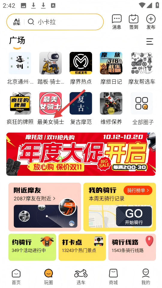 5、打造以兴趣为导向的社区交流体系,支持按车型地域组建社群,配套约骑活动组织与经验分享功能。
