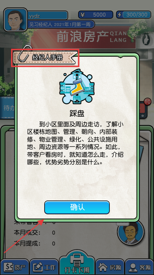 2、查看【经纪人手册】中的踩盘指南后点击【确认】按钮,可解锁小区信息并为带客看房做准备。