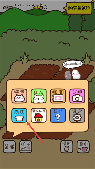 2、打开菜单后选择【商店】,进入道具购买界面,可获取猫咪、场景等道具,推进田园经营。