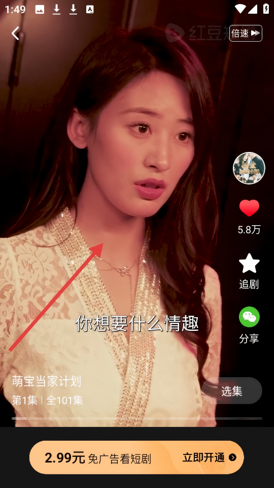 4、在《萌宝当家计划》第1集播放页面,可观看剧集,还能通过右侧按钮进行点赞、追剧、分享等操作。