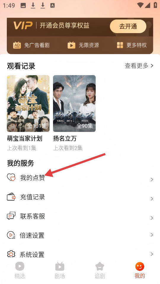 2、在【我的】页面,点击【我的点赞】选项,查看点赞过的内容。