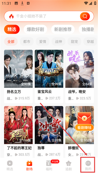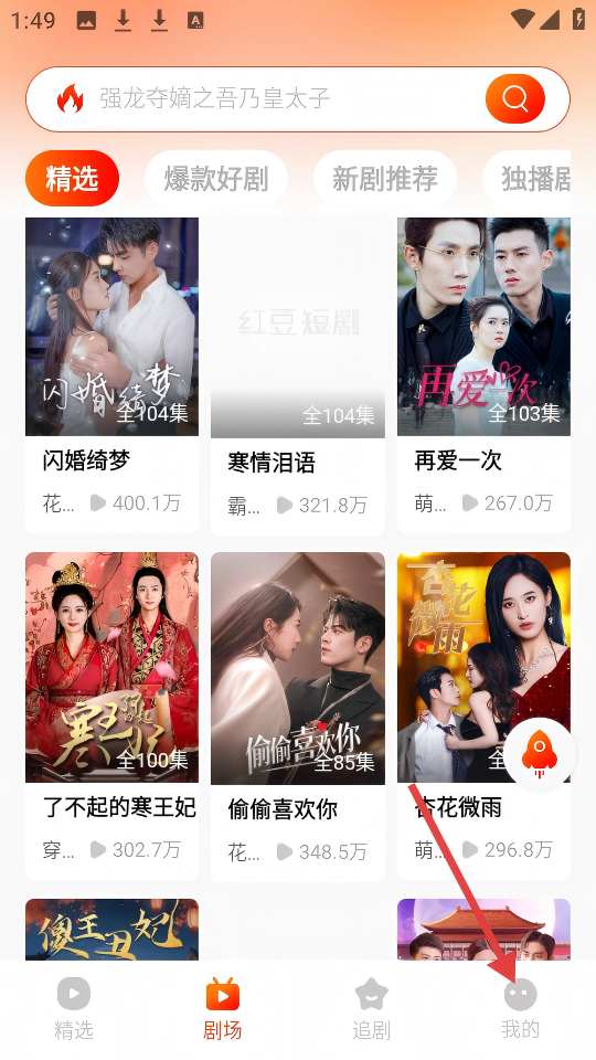 1、在精选页面,点击底部【我的】按钮,进入个人页面。