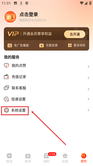 2、进入【我的】页面后,在【我的服务】板块找到【系统设置】选项,点击即可进入对应的设置页面。