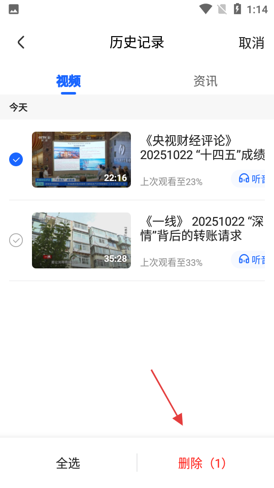 4、选择要删除的历史记录,点击【删除】,完成删除操作。