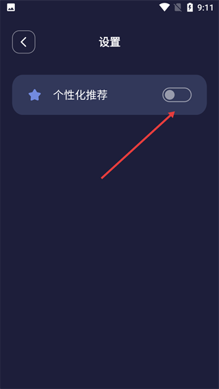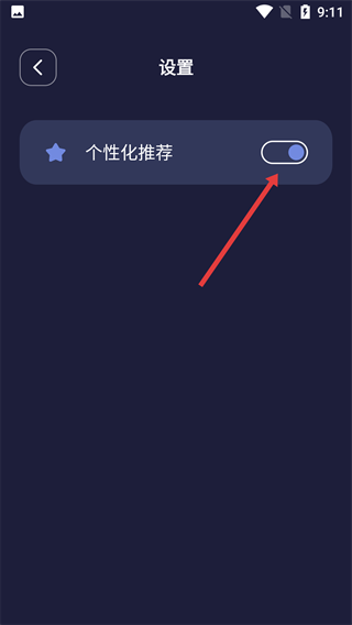 3、进入【设置】页面,找到【个性化推荐】功能对应的开关。