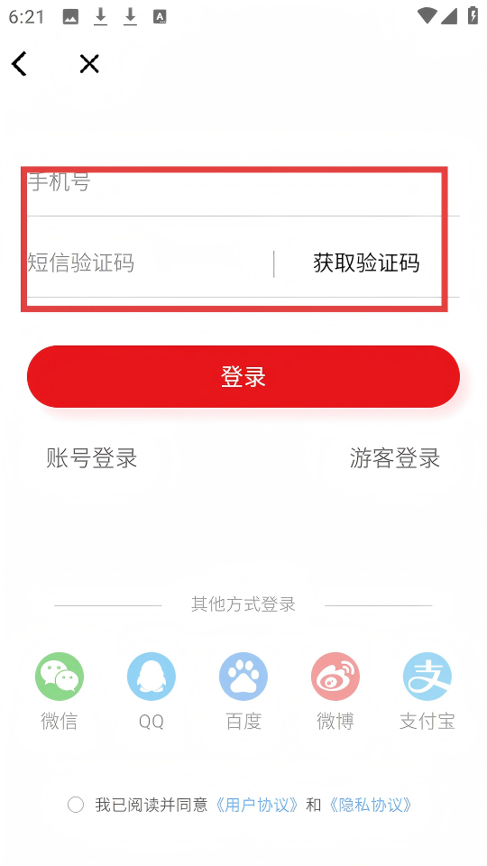 4、在登录界面输入手机号,点击【获取验证码】并输入。