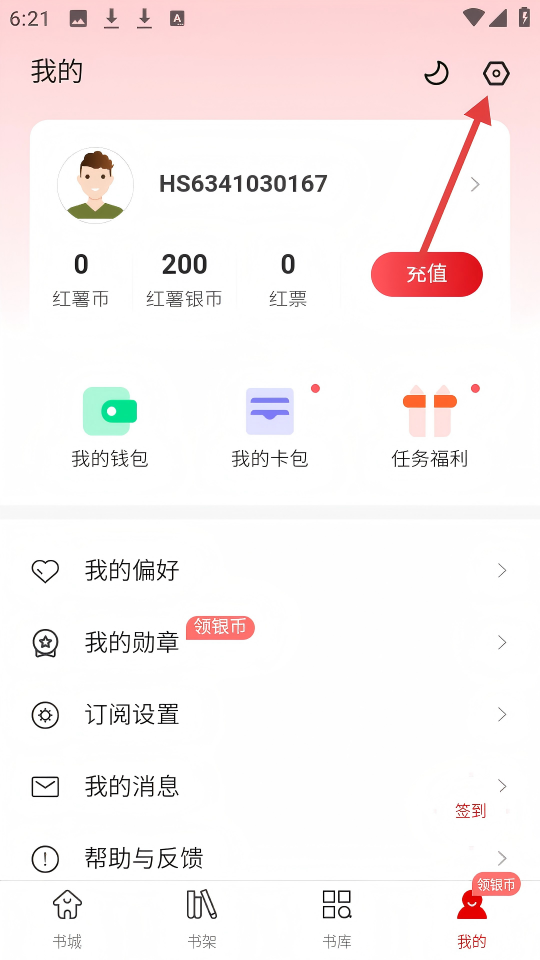 2、在我的页面点击右上角的设置图标,进入设置界面。