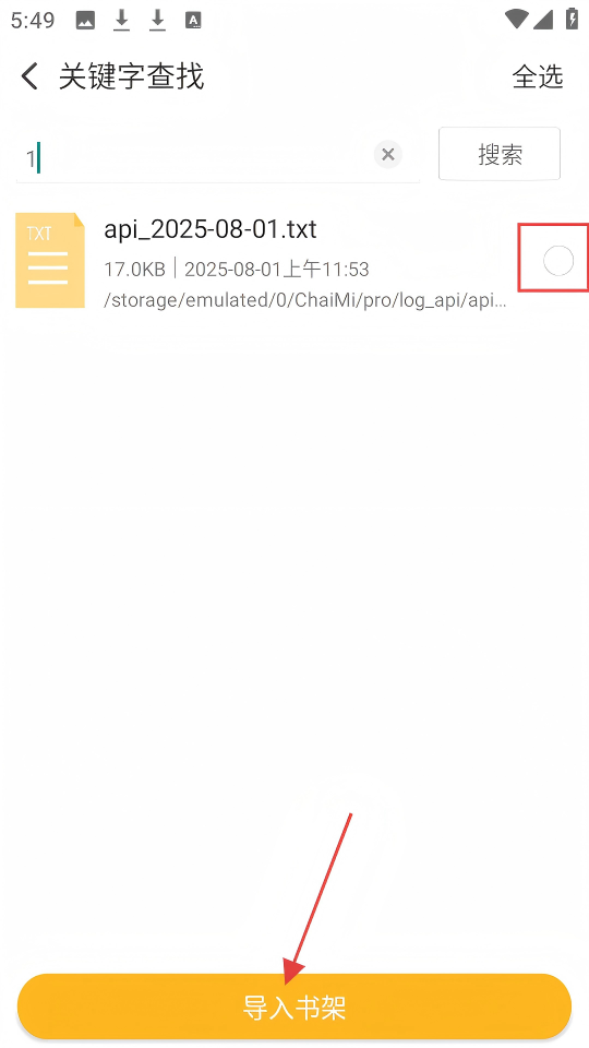 2、勾选文件后,点击【导入书架】,可将文件导入书架。