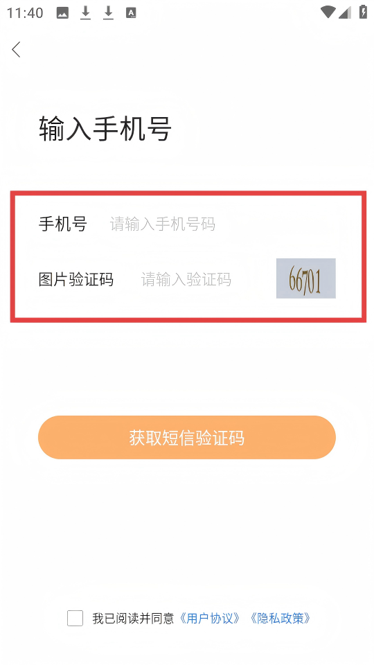4、在输入手机号页面,【输入手机号码】和【图片验证码】,勾选同意协议后可点击【获取短信验证码】。
