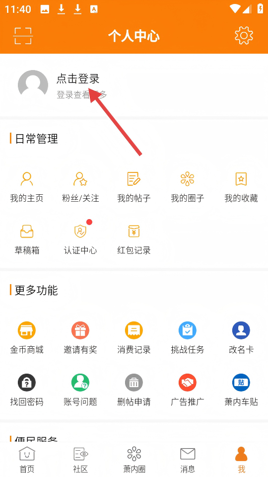 2、在个人中心页面,点击【点击登录】可进入登录页面。