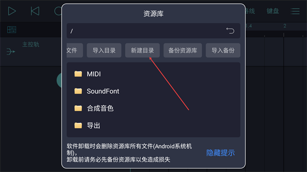 3、进入资源库界面,点击顶部的【新建目录】按钮,弹出“新建目录”的名称输入弹窗。