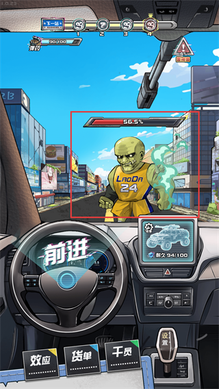 2、战斗中关注僵尸血量【565%】,结合【血-装甲-千金】按钮,提升车辆续航的战斗效率。