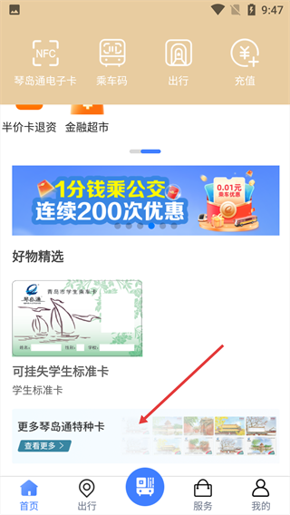 1、在首页,点击【更多琴岛通特种卡】,进入特种卡申请页面。