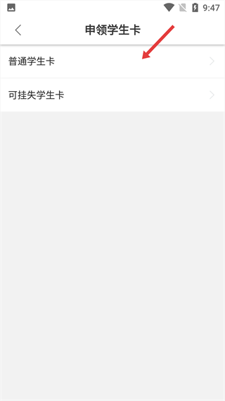3、进入申领学生卡页面,选择【普通学生卡】。