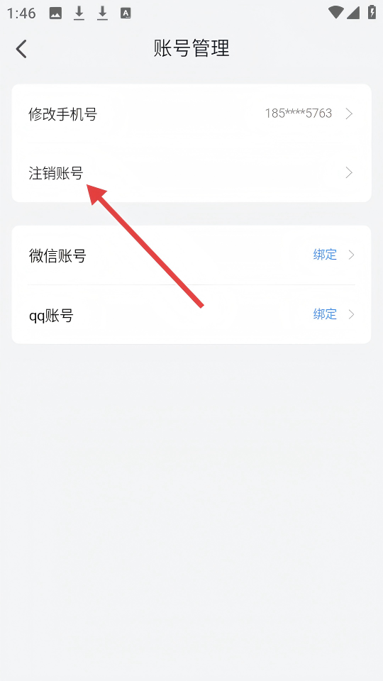 3、在账号管理页面,点击【注销账号】,可进入账号注销流程。
