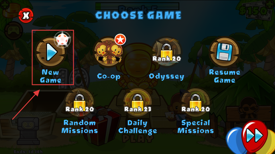 1、点击【NewGame】进入游戏模式选择界面,开启你的气球抵御策略塔防挑战之旅。