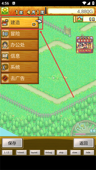 2、在打开的菜单列表中选择【建造】选项,点击建筑功能界面,推进小镇的建设进程。