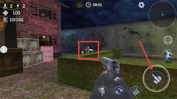 2、进入游戏后,跟随方框内队友寻找敌人。