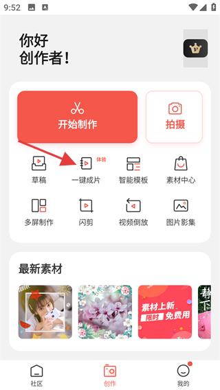 1、进入云美摄界面,点击【开始制作】按钮,进入视频素材选择页面。