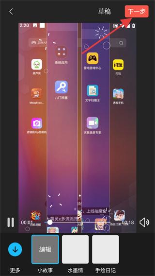 4、进入草稿编辑界面后,可通过【主题】【音乐】等工具美化视频,完成内容编辑,点击右上角【下一步】,即可完成视频的制作流程。