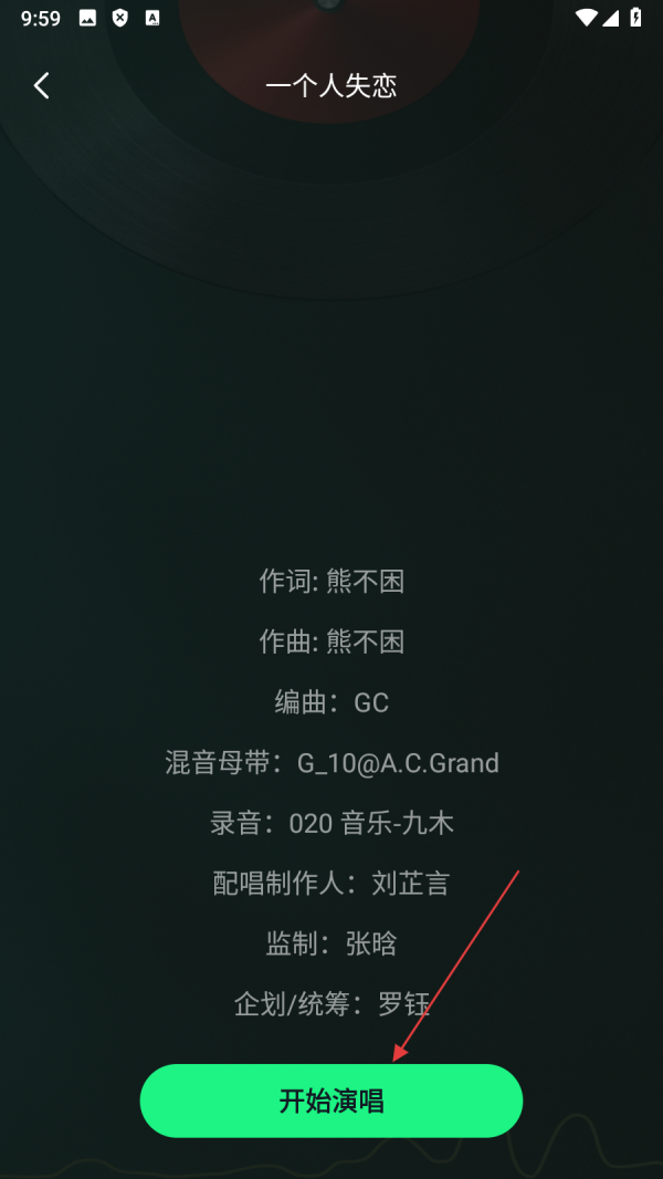 3、在歌曲演唱准备界面,点击【开始演唱】,进入演唱录制界面。