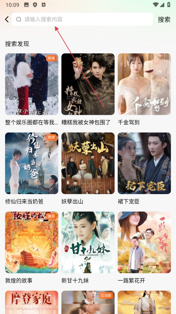 2、在搜索页面的输入框中【输入内容】,点击【搜索】,获取相关短剧结果。