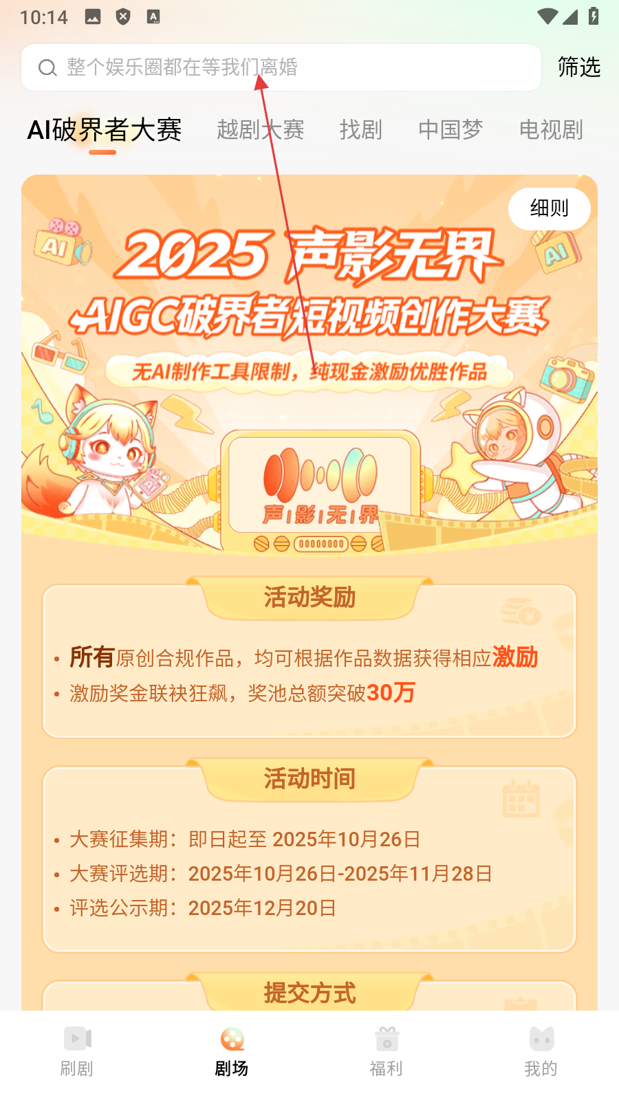1、在剧场页面,点击底部【刷剧】,进入搜索页面。