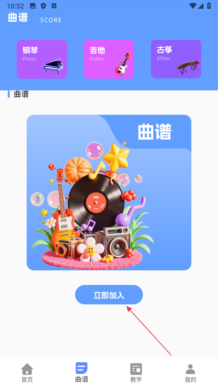 2、在曲谱页面,点击【立即加入】,进入乐器选择界面。